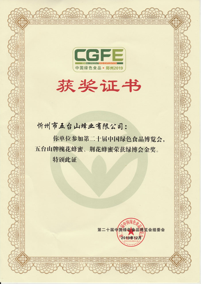 五臺山牌槐花蜂蜜喜獲中國綠博金獎